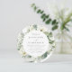 Elegant, botanisk bröllopsinbjudan med dina bröllopsdetaljer omgivna av målade vita trädgårdsblommor, kvistar av babysand, salvia gröna ormbunksblad och levande gröna blad. Denna cirkelbröllopsinbjudan är perfekt för trädgårdsbröllop och vår- eller sommarbröllop.