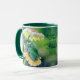 Frog Friends som gillar regnet under en blomma Mugg