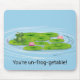 Cute grönt grog på en lätt platta med rosa vatten lilies och vatten-krämer för vän eller familjemedlem. Text kan redigeras.
