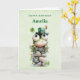 Birthday card with a cute St. Patrick's Day image. A green frog with big cartoon eyes sitting on a stone wall. Wearing a green top hat with a shamrock and a little friend sitting on top of his hat.