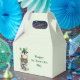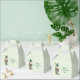 Tiny favor box with a cute St. Patrick's Day image. A green frog with big cartoon eyes sitting on a stone wall. Wearing a green top hat with a shamrock and a little friend sitting on top of his hat.