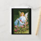 Det tyska Påsk-kortet i vintage visar en ängel klädd i blått rosa ros. Kortmeddelandet är "Frohliche Ostern" (Glad påsk).