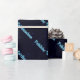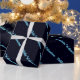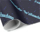 Froliche Weihnachten (tysk-God jul) visas i blått och vitt på en stjärnfältsbakgrund.