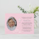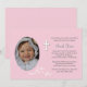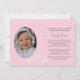 En ljusrosa bakgrund med ett enkelt kors och en gren av vita abstrakta blommor ger elegans åt denna design. Det ovala fönstret är perfekt för ditt barns fotografi. Det vita korset kan dras till valfri plats, göras större eller mindre eller tas bort. Välj denna inbjudan för en dop, första kommunion eller konfirmation. <br/>