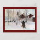 Bilden av vintagen på vintern med barn i snö, far och hus och lada i bakgrunden. Gamla scenen från den svenske konstnären Carl Larsson