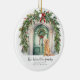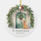 En julprydnad med vacker vattenfärgad dörr, vrak, bogar och en söt guldfärgad hund - Helgdag från Ricaso - lägg till din egen Helgdag och ett foto (längst bak)