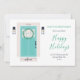 Berätta för dina vänner och din familj att du har flyttat med detta vackert designade meddelande. Kortet har en modern tealdörr som är dekorerad med helgdag.