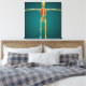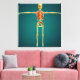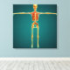 Främre sikt över humant skelett med nervsystemet, artärer och vener.