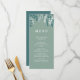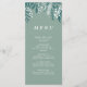 Denna cocktailmeny har en illustration av snöig lövverk i en grön och vit färgpalett med bär, eukalyptus, granbar och blad. Det skulle vara perfekt för en elegant cocktailfest eller för en dryckesmeny på en vinterbröllop.