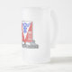 Frostat glas mugg med handtag och emblem för ’styrka och mod’. 16 oz.