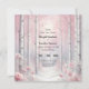 Gå in i en saga med den här fantastiska bröllopsinbjudan, med mjuka blommigtar som blåser varsamt mot en bakgrund av snöbjörn träd. Scenen fångar den tysta elegansen av ett vinterskog som påverkas av frost och ljus, perfekt för ett romantiskt vinterbröllop eller en ethersk skog firande. Den här designen har en fantastisk typografi och en drömmande rosa palett och ger dig en känsla av magi, värme och tidlös skönhet till din speciella dag.
