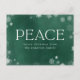 Impress alla på din julkortslista med ett vykort för elegantens helgdag. Visningarna "Peace" (ej fotojullvykort) visas i ett modernt serif-teckensnitt i trendiget med ett gräns-vitt snöflingor mot en grönt vattenfärgbakgrund. Anpassa vykortets framsida genom att lägga till ditt namn och anpassningsbar hälsning. Baksidan av vykortet för helgdag har returadress och plats för anpassningsbarna. Utformningen koordinerar med vår Frosted Peace-julkortsamling.