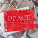 Impress alla på din julkortslista med ett helgdag för snöflingor i elegant. Festive non-Photo-kort har "Peace" i ett modernt serif-teckensnitt i trendiget med ditt namn eller anpassningsbar som visas nedan. Utformningen har en gräns av vitt snöflingor med röd vattenfärgbakgrund. Baksidan av snöflingkortet innehåller anpassningsbarnas meddelande i vit helgdag mot en röd vattenfärgsbakgrund. Utformningen koordinerar med vår Frosted Peace-julkortsamling.