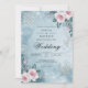 Fintvätt av blommar och snöflingor intertwine på en mjuk, isig blå bakgrund. Gör en magisk, romantisk vinteratmosfär för din speciella dag. Den här designen fångar säsongens vackra skön.
