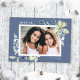 Denna elegant och det klassiska helgdag har en vacker vattenfärg ram av ömtålig löv och bär på en vacker mörk med blått ljus bakgrund. Den här designen rymmer ett enda foto på framsidan av vågrät. Hälsning på framsidan säger "GLATT" i ett klassiskt serif-teckensnitt, vilket är helt redigerbart. Kortets baksida är en diagonal rand mönster i sidled och vit grönt, som kan tas bort om så önskas. Du kan också lägga till ett annat foto till baksidan och/eller ytterligare text.