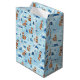 Charming red foxes in scarves wander a snowy blue forest of evergreens and mountains. Whimsical and wintery, perfect for cozy style.