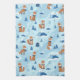 Charming red foxes in scarves wander a snowy blue forest of evergreens and mountains. Whimsical and wintery, perfect for cozy style.