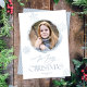 Det här helgdag av elegant har ett enkelt runda foto över en klassisk vit bakgrund och ljusblå spridd snöflingor. Hälsning säger "God jul". Den här designen rymmer ett enda foto på framsidan. Kortets baksida är en koordinerande blå och vit diagonal rand mönster, men kan tas bort om så önskas. Du kan anpassa den här designen ytterligare genom att lägga till ett annat foto och/eller ytterligare text på baksidan.