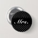 Rolig Fru pinback knäppas för brud som den rättvisa har att gifta sig. Bära på bachelorettepartyet, bröllopsdag, bröllopmottaganden. Den flott svartvita polkaen pricker mönsterdesign. Personalizable stilfull text och elegantbakgrundsfärg. Också tillgängligt som Herr