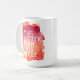 Humoristisk text "min fru är varmmare, än detta kaffe" på en orange och röd vattenfärgbakgrund i modernt och funky skrivar räcka-märkt typografi. Underbar gåva för en årsdag, en födelsedag eller valentin dag.