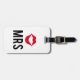Fru text med röd läppar, för kopplar ihop bagagebricka
