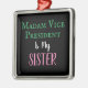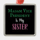 Vår fru Vice president Är min sister PG Metall Ornament är perfektens gåva till vänner som är sorterade systrar med Vice president Kamala Harris! Utformningen innehåller text i vit grönt och rosa gått med med svart bakgrund. Det enkla budskapet: "Fru Vice president är min syster". Tillgängliga volymrabatter!