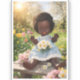 Dieses liebevoll gestaltete Motiv fängt die pure Unbeschwertheit eines strahlenden Frühlingsmorgens ein. Eine charmante Vintage-Puppe sitzt inmitten eines Meeres aus bunten Tulpen und Gänseblümchen, während die warme Morgensonne durch die blühenden Obstbäume blitzt.
