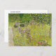 Ett vykort för bra med målningen Fruit Garden with Ro (c. 1911), av Gustav Klimt (1862-1918), en österrikisk konstnär från Art nouveau Period. Ett trädgårdslandskap i ro med äpple träd i bakgrunden.