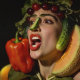 Fruits of Expression – A Surreal Portrait. A whimsical self-portrait with an unexpected twist, this piece merges realism with surrealism by using vibrant fruits and vegetables to frame the subject's face. The subject’s serene expression contrasts with the playful use of produce - especially the cucumber acting as a nose - creating a humorous yet symbolic exploration of nourishment, vitality, and beauty. A tribute to both nature's abundance and human creativity.