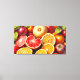 En levande arrangemang av olika frukter omfattar skivad grapefrukt och citron, som visar sitt juicy insida. Fruktsortimentet, som innehåller orangar, granatäpplen och jordgubbar, kompletteras med några grönt löv.
