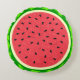 Denna nätt vattenmelondekorativ kuddedesign har en rundafrukt, som ser något liknande som, den har skivats, så de saftiga rosa-röda kött av melonshowsna på bekläda, tillsammans med överflöd av svart vattenmelonfrö. Bär har också en spräcklig grönt, fläckigt skal.