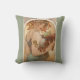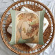 En dekorativ kudde med illustrationen av Alphonse Mucha (1860-1939), Fruit (1897). En porträtt om en kvinna som håller en basket av frukt med päron, druvor och äpplen.