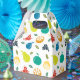 Cute, roligt och mönster med orangar, citroner, äpplen, päron, blåbär, rödbär och plommon. Modern och trendig, perfekt för frukten älskare i ditt liv.