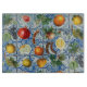 En vacker kombination av Medelhavsfrukt och Azulejo blå och vita plattor i bakgrunden. Medelhavsfrukt omfattar fikon, granatäpplen, karober, citroner, orangar, citrusfrukter, pomelos, druvor, mandariner och mycket annat. En vacker kombination av spanska, portugisiska, vintage och sommarfrukt i vintagen vid Medelhavet. Perfekt design för alla som utformar kärlek Mediterranean stil, fruktar älskare, världsresenärer, Medelhavsmaten och dekanter.