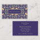 Letar du efter visitkort som utstrålar elegans? Fruit and Flowers Midnight Blue Visitkort har ett elegant mönster som bakgrund, med ditt namn i centrum. Baksidan av kortet innehåller kortinnehavarens information i tan text på en lila bakgrund.