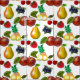 Fruktsalad, äpplen, päron, körsbär, hallon, blåbär och ananas