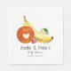 Frukttemat babydusch med illustration av äpple, bananer, jordgubbar och päron.