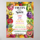 Frukter av anden, denna kristna design har en färgstark visning av söta frukter med leende ansikte och en bibel vers för "Frukter av spriten".