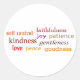 Galationer 5:22-23 Men den Heliga andan ger oss den här typen av frukt i våra liv: kärlek, glädje, fred, tålamod, godhet, godhet, trohet, godhet och självkontroll.