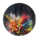 En dynamisk explosion av färska frukter, inklusive äpplen, jordgubbar, bananer och bär, som är konstgjort arrangerad i ett dynamiskt snurrande mönster. Bright stänk av färg - , , grönt och blues - samverkar med frukterna och skapar en energisk och livlig sammansättning. Bakgrunden är mörk för att öka fruktens livskraft och färskhet i färg och framkalla en känsla av livskraft och överflöd.