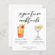 Det här trädgårdsbröllopet namnteckning cocktails Meny lakan har en enkel svart typografi över 2 drycker och deras ingredienser för din utomhussommar pub. En söt Tequila Sunrise och Lemon Drop teckning lägger till en coola till pub-menyn. Fyll i med parets namn och mottagningsdatum.
