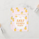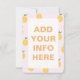 Utformningen har små illustrerade persikor i orange färg med grönt löv. De dansade fruktdansen och hoppade in i ditt liv till ge. Du trillar med deras söta och exotiska smaker. Du kan anpassa en inbjudan med ett annat teckensnitt och stil, du kan också lägga till din händelseinformation längst bak på kortet.