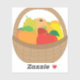 En vektorgrafik av en korg full av frukter. Frukterna består av orange, persika, päron, vindruvor, mango, banan, jordgubbe och äpple.