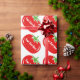 Lustigt rödtomatgrönsaksförpackad anpassningsbar papper. Utmatning av klumpar med hälsosam matdesign i mönster. Den fantastiska julomslagningen eller Helgdag på födelsedagen ger för manar kvinnor och barn. Lägg till ett eget citat av namn eller humoristisk typ nedanför ikonen för frukt/grönsaker. Tematavtrycket Vegan/Vegetarian. Röd och grönt färg. Och trevlig för kock.