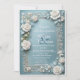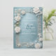 En fängslande bröllopsinbjudan med tredimensionella isiga rosor, som symboliserar renhet och evig kärlek. Inbjudan är designad med en frostig, vintersnygg estetik, perfekt för ett vintersagan-bröllop.