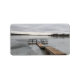 En etikettrulle med ett foto av fryst docka i Sooner Sjö i Oklahoma.