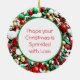 Fryst julsockerkaka med Candy Sprinkles roligt helgdag prydnadsämne. På baksidan av dekoratet finns ett ställe där du kan skicka ett personlig-meddelande.