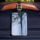 Anpassa baksidan av bagagetaggen med din personliga information. Det innehåller en imponerande bild av ett sceniskt vinterlandskap i det frusna Cayuga Sjö som ses från Stewart Park i Ithaca, NY. Det är ett av de fem Sjöar i Finger i uppstaten New York. Kallet i frigid-isigen i februari illustreras av de vackra nyheterna blått, grått, svart och vitt på isen och himlar. Willow träd grenar i silhuette ram i förgrunden. Få ut ditt bagage på en karusell med unika märkre!