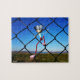 Fubby poppetje dat in het hek omhoog klimt. pussel