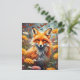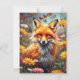 Ein hübscher kleiner Fuchs schaut dich an. Er sitzt zwischen Blumen und spielte mit Schmetterlingen.